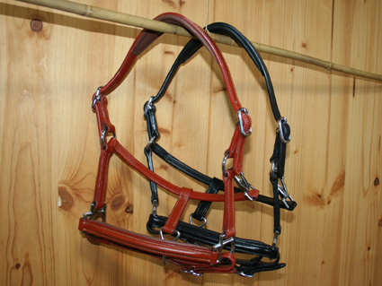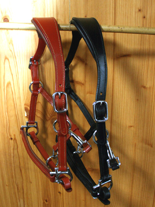 Halfter aus Büffelleder mit verstellbaren Genick- und Nasenriemen.