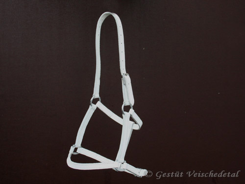 Lederhalfter aus weißem Leder mit verstellbaren Genick- und Nasenriemen.