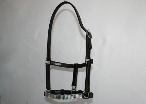 Lederhalfter in schwarz mit Strass-Steinchen auf dem Nasenriemen