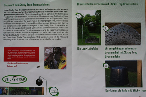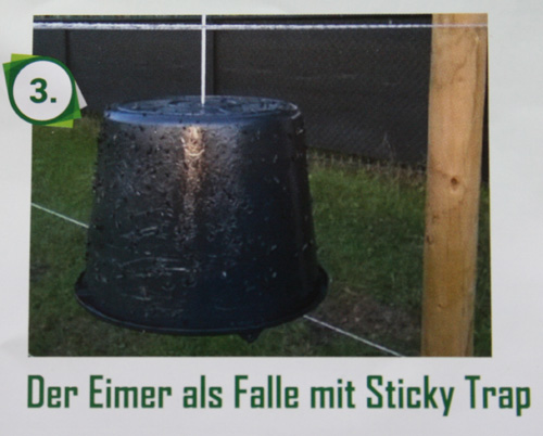 Zum Fangen von Bremsen auf der Weide(schwarzer Eimer) oder Fliegen im Stall (weißer Eimer)